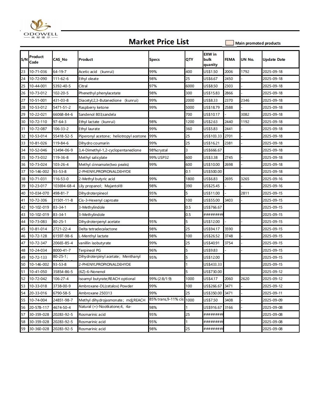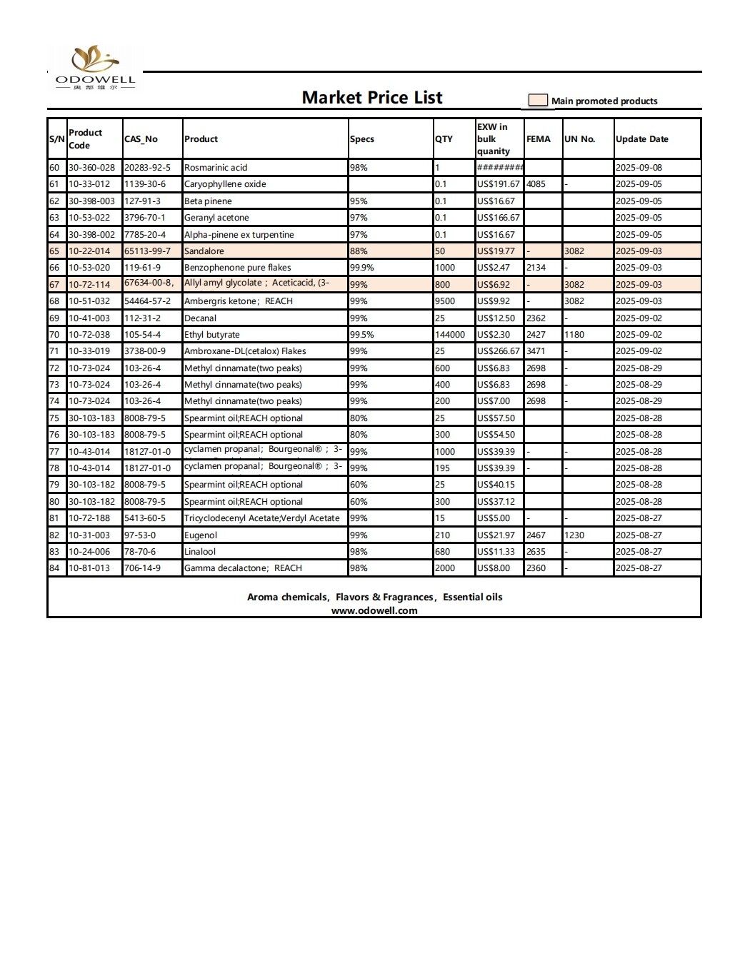 ओडोवेल-मार्केट मूल्य सूची -2025.8.27-2025.09.29