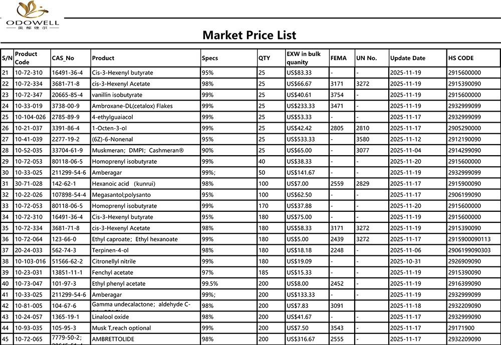 ओडोवेल-बाजार मूल्य सूची-2025.10.25-2025.11.25